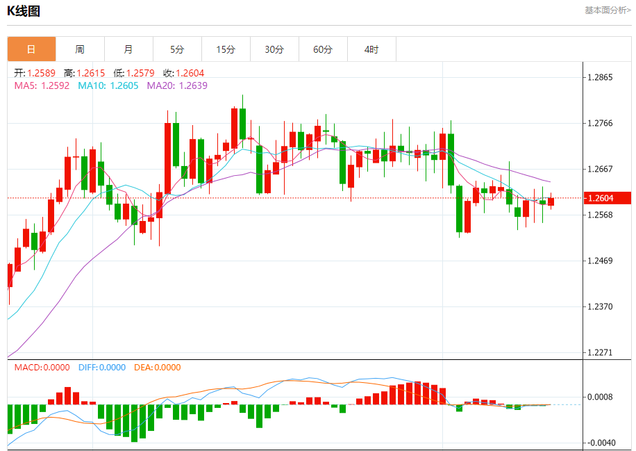 周二盘中,英镑/美元报1.2605,涨幅0.10%。