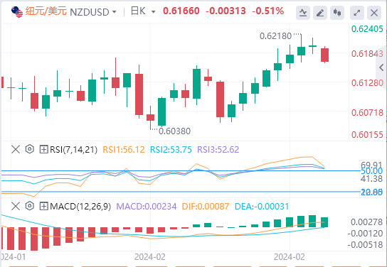 2月26日,周一欧式盘前,纽元/美元在新一周的第一天面临沉重的抛售压力,并从上周四触及的0.6215-0.6220区域附近的五周高点进一步回落。在亚洲时段跌至0.6165-0.6160区域,目前,在美元小幅走强的情况下,似乎已经结束了连续八天的上涨。