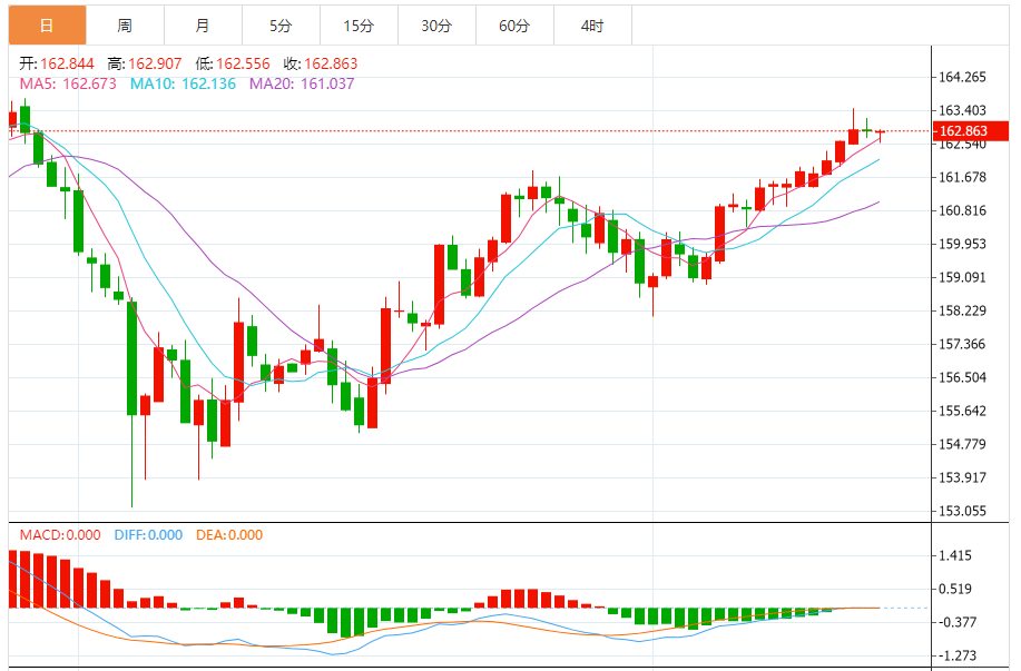 今天的预期交易范围:在162.55和163.20之间