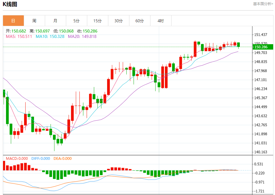 周二盘中,美元/日元报150.298,跌幅0.26%。