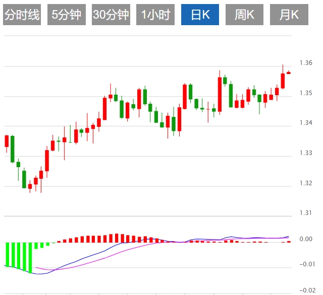 周四亚盘,美元/加元继续上涨,连续第五个交易日上涨,截止发稿,小幅走高至1.3580附近。由于原油价格下跌,加元兑美元面临下行压力,从而为美元/加元货币对提供支撑。此外,加拿大的国内生产总值(GDP)数据将在北美时段晚些时候受到密切关注。
