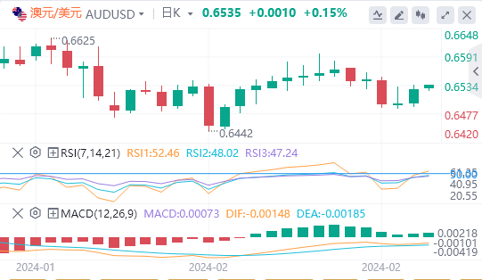 3月4日,周一亚市早盘,澳元/美元在0.6500下方。尽管美元和美国收益率走低,但澳元/美元还是失去了牵引力。在美国非农就业数据(NFP)公布之前,投资者正在等待澳大利亚第四季度国内生产总值(GDP)的公布。澳元/美元目前交投于0.6535附近,日内上涨0.15%。