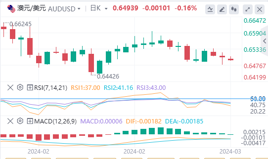 澳元基本未受国内生产总值(GDP)数据不及预期的影响。2023年第四季度国内生产总值(GDP)环比增长0.2%,略低于市场预期的0.3%。不过,GDP同比增长1.5%,超过预期的1.4%,但低于前值2.1%。