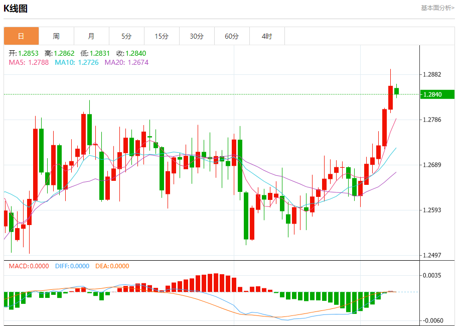周一盘中,英镑/美元报1.2841,跌幅0.09%。