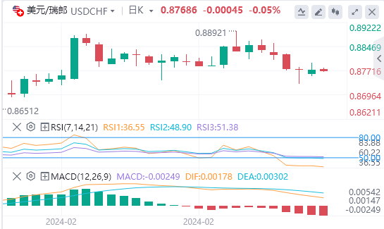 3月12日,周二欧市早盘,美元/瑞郎盘整于0.8700上方。在稍后公布关键的美国通胀报告之前,投资者倾向于观望。与此同时,市场维持谨慎情绪,可能会提振瑞郎。美元/瑞郎目前交投于0.8768附近,全天下跌0.05%。