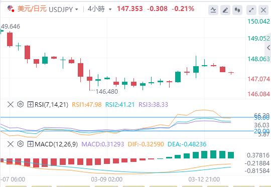3月13日,周三亚市盘中,日元走高,自前一天触及的一周低点反弹。彭博社援引熟悉内情的人士的话报道称,日本央行(BOJ)正在考虑在3月份加息,尽管结果还很难以预料,最终决定将在官员们看到春季工资谈判的初步结果之后做出。这因此又被视为支撑日元的一个关键因素,并在美元小幅下挫的情况下进一步打压美元/日元货币对。