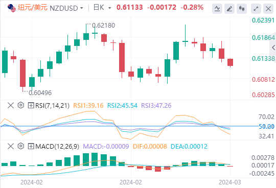 3月15日,周五亚市早盘,纽元/美元震荡走弱,处在0.6100中档下方。纽元/美元下跌是受强劲的美国生产者价格指数(PPI)数据推动的。与此同时,美元指数走高至数交易日以来的新高,突破了103.00关口。