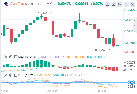 3月22日,周五亚市早盘,纽元/美元走低至0.6047附近,跌幅为0.33%。纽元/美元市场情绪似乎偏向看跌,空头维持强大主导。小时图显示,纽元/美元抛售压力略有缓解,但空头依然存在。