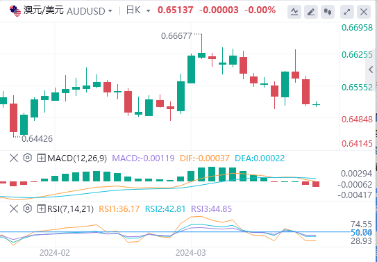 3月25日,周一亚市早盘,澳元/美元在0.6500关口上方获得一定支撑。在美元进一步走高的情况下,澳元/美元走低。投资者将关注澳大利亚2月份消费者物价指数(CPI)和美国第四季度国内生产总值。