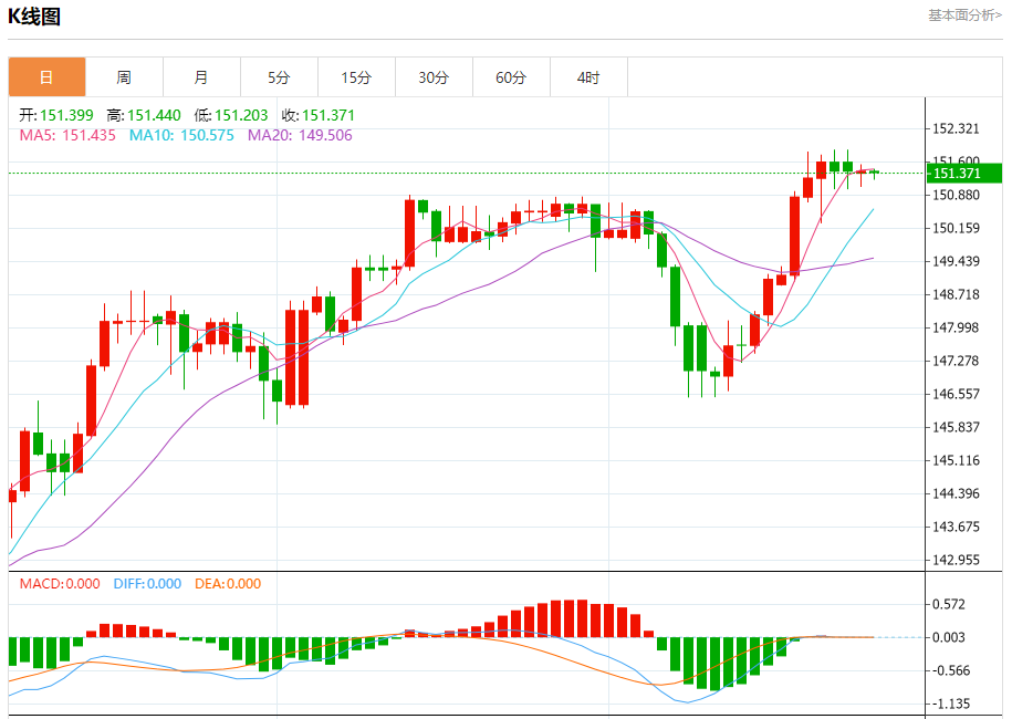 周二盘中,美元/日元报151.383,跌幅0.02%。