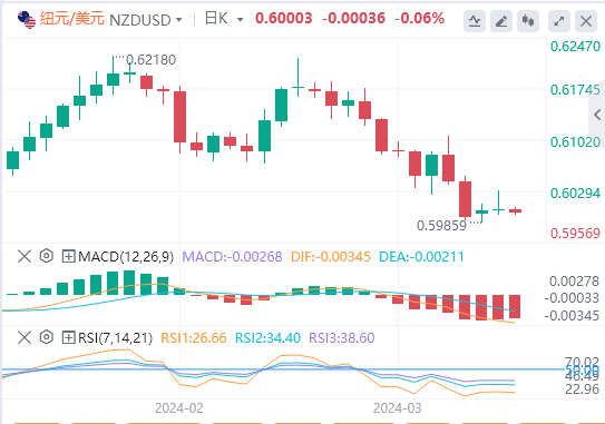 3月27日,周三亚市早盘,尽管美元走弱,但纽元/美元仍维持守势,处在0.6000附近。当天晚些时候,新西兰将公布澳新银行(ANZ)商业信心指数。耶稣受难日假期之前,市场可能会在清淡的交易中保持沉默。
