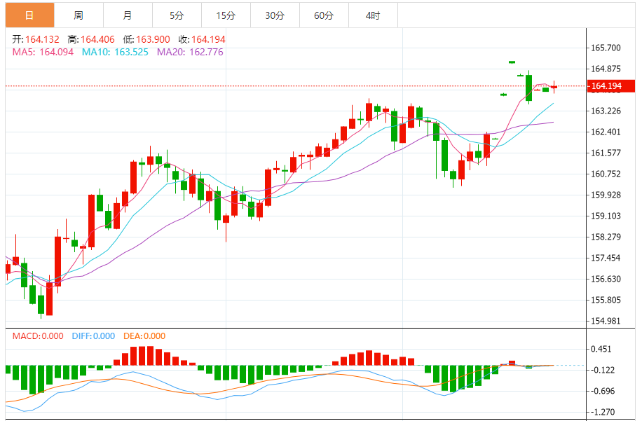 技术上,欧元兑日元昨日未能确认突破163.25的障碍,未能形成新的受随机负面矛盾影响的横向波动,不利于看涨通道支撑线163.70上方的主要稳定性。