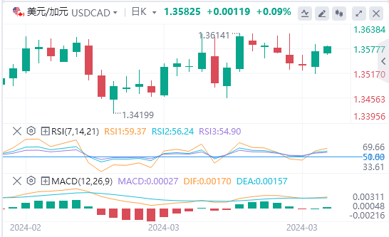 美元指数的走势,在美联储(Fed)今年是否会降息三次的疑虑下,该指数已升至2月14日以来的最高水平。美国公布的乐观数据显示,3月份制造业出现了2022年9月以来的首次增长,投资者因此降低了对美联储6月份降息的押注。这对美国国债收益率的上升仍有支持作用,而美国国债收益率的上升又利涨美元/加元。