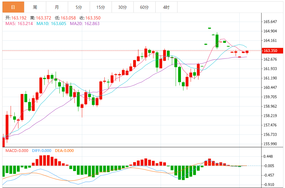 今天的预期交易区间:在163.60至162.65之间。