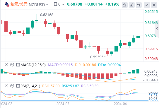 4月10日,周三亚市盘中,纽储行公布利率决议后,纽元/美元出现波动。纽储行连续第六次会议将官方现金利率(OCR)维持在5.5%,符合预期。周三亚市,纽元/美元维持在0.6070附近。