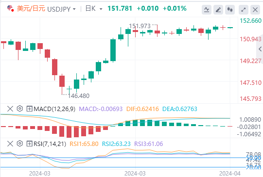 4月10日,在周三公布美国消费者物价指数(CPI)数据和FOMC会议纪要之前,美元/日元保持平静。目前徘徊在151.78附近。日元可能面临挑战,因为日本央行(BOJ)行长植田和男(KazuoUeda)表示,他们不会仅仅为了应对外汇波动而改变货币政策。