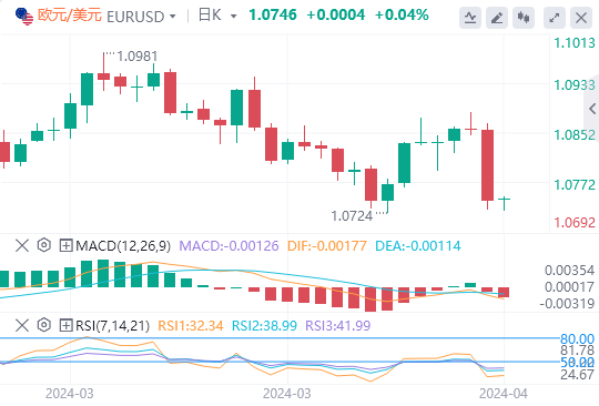 4月11日,周四欧市早盘,欧元/美元承受了沉重的看跌压力,在周三录得2024年来最大单日跌幅,跌幅超过1%。由于投资者在等待欧洲央行(ECB)的货币政策决议,欧市早盘持稳在1.0750下方附近。