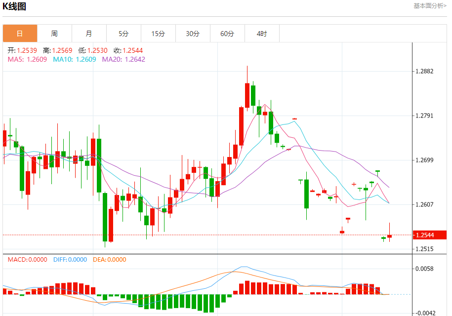 周四盘中,英镑/美元报1.2545,涨幅0.02%。
