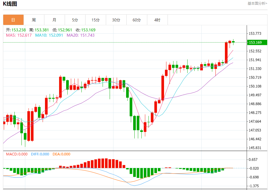 周五盘中,美元/日元报153.181,跌幅0.06%。