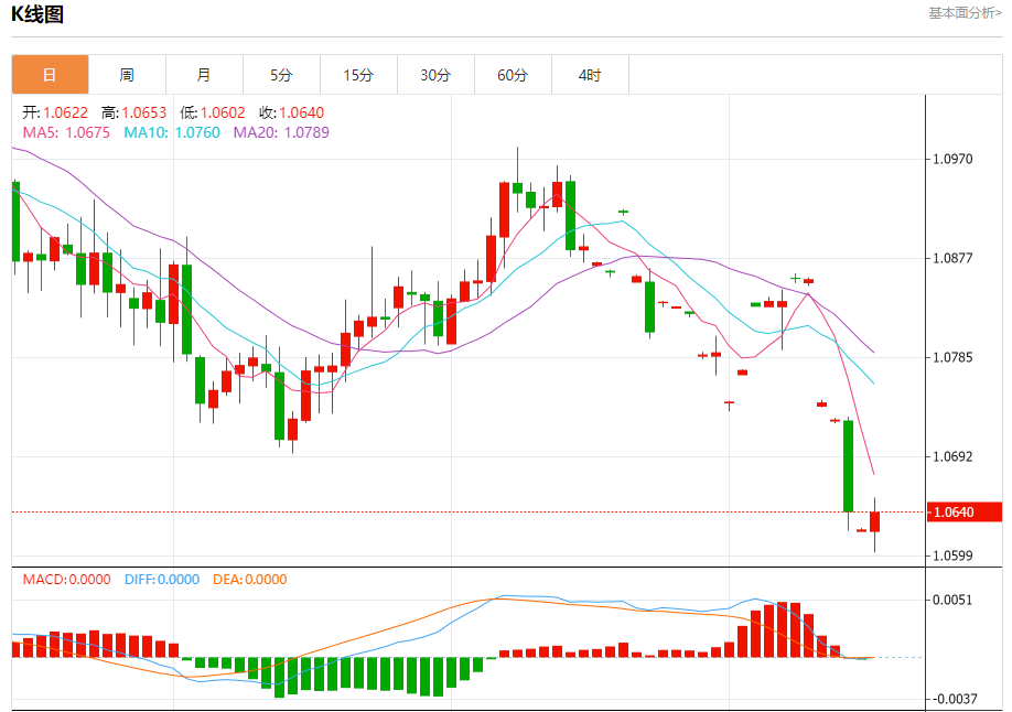 周二盘中,欧元/美元报1.0641,涨幅0.16%。