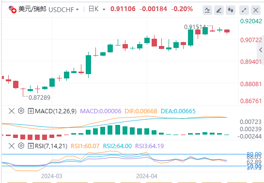 4月17日,周三欧市盘中美元/瑞郎面临一些抛售压力,跌至0.9105。美元指数下跌至106.20,支撑了该货币对的下跌。此外,中东持续的地缘政治紧张局势继续支撑瑞士法郎,这是一种传统的避险货币。