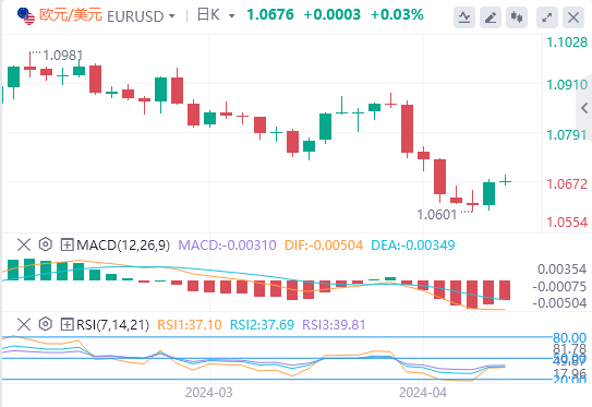 欧元/美元周四在1.0680交易几乎没有变化,这是在4月低点触及1.0601后周中开始的掉头。