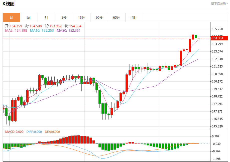 阻力位:155.00 154.75 154.55