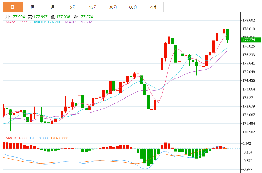 请注意,遭受额外的看跌压力可能会迫使其突破177.05水平,以确认其准备提供额外的修正交易,目标为176.35和175.65水平,而价格成功突破178.00水平并保持在该水平之上将增加记录额外收益的机会,预计最初目标为178.65和179.30水平。