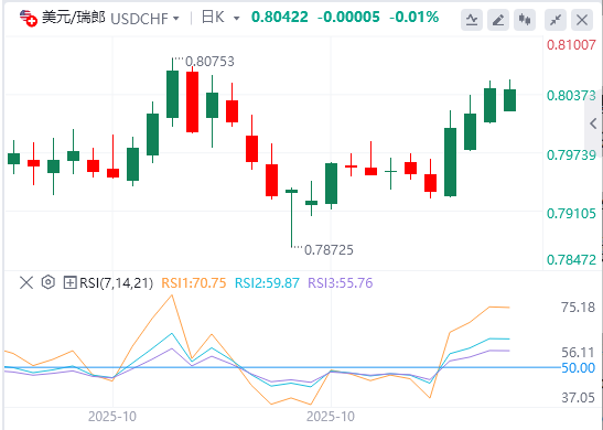 11月3日,周一欧市初盘,美元/瑞郎货币对在两周多高点0.8050附近表现强势。由于美联储(Fed)今年进一步放松货币政策的猜测消退,美元(USD)保持涨幅,瑞士法郎货币对坚挺交易。