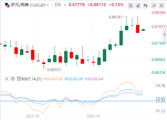 11月3日,周一欧洲早盘,欧元/英镑交叉盘小幅走高至0.8775附近。围绕英国财政大臣雷切尔·里夫斯(RachelReeves)的政治压力越来越大,对英镑(GBP)兑欧元(EUR)施加了一些抛售压力。英国央行(BoE)的利率决定将于周四晚些时候成为焦点。