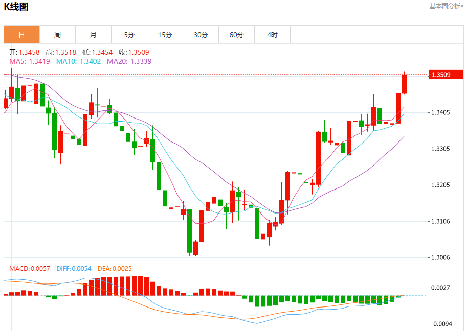 周二,英镑/日元下跌0.39%至210.62附近。