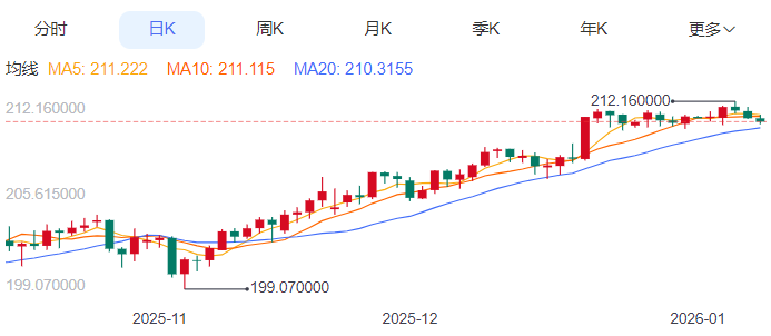 日元方面,日本央行的鹰派转向成为支撑日元的核心动力。1月5日,日本央行行长植田和男在新年讲话中释放明确信号,表态日本央行的加息周期远未结束,将根据经济和通胀改善情况持续加息。此前的12月19日,日本央行已将基准利率上调至0.75%,创下1995年以来的最高水平。市场对后续加息预期持续升温,隔夜指数掉期显示2026年底前日本央行可能再加息两次,多数观察人士预计下一次加息或在年中左右,若日元持续走弱则可能提前。与此同时,日本10年期国债收益率一度攀升至1999年以来的最高水平2.125%,反映出市场对加息周期的坚定信心。日本财务省也已明确表态,将对过度的汇率波动采取“适当行动”,进一步强化了日元的政策支撑。
