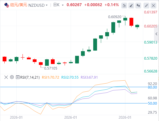 2月2日,周一亚市盘中,纽元/美元货币对在0.6025附近保持正向。纽元(NZD)兑美元(USD)在中国制造业采购经理指数(PMI)数据发布后保持坚挺。交易者将在周一晚些时候更多参考美国ISM制造业PMI报告。