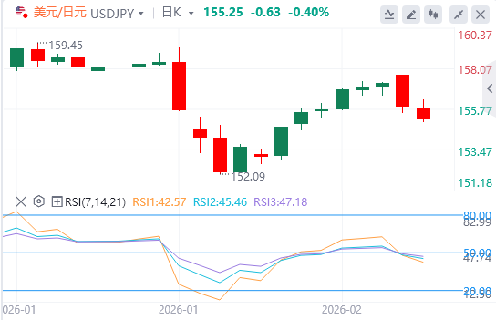 2月10日,周二,美元/日元连续第二天走低。该货币对在155.00上方一周低点易手,低于周一的157.66高点,投资者正为12月的美国零售销售报告做准备。