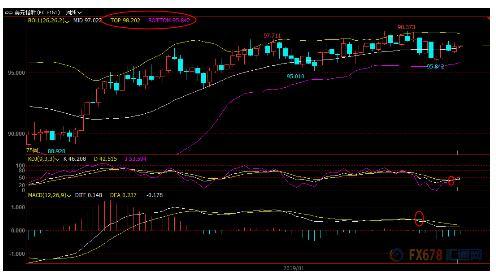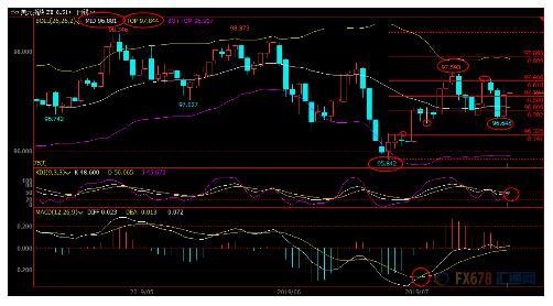 下方布林线中轨96.88已经转化为初步支撑所在,若意外回落至该位置下方,则削弱短线看涨信号。