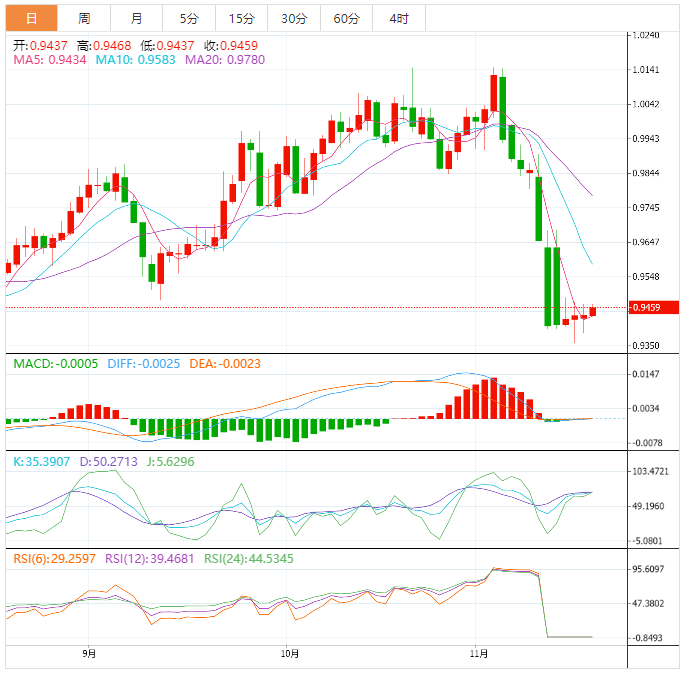 展望未来,突破周一高位0.9489的决定性走势将推动该资产走向11月10日的低点0.9630,随后是11月9日的低点0.9800。