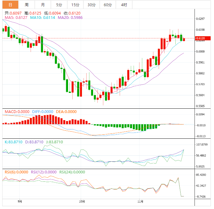 支撑位:0.6069 0.6037 0.5987