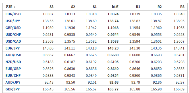 日元:美元/日元收低,收报138.692,跌幅0.17%。技术面上,汇价上行的初步阻力位于139.405,进一步阻力位140.118,关键阻力位于140.893;汇价下行的初步支撑位于137.917,进一步支撑位于137.142,更关键支撑位于136.429。
