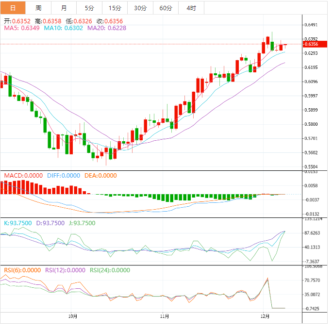 另一方面,跌破一轮阻力位0.6300将拖累该货币对走向11月29日的高点0.6254和11月30日的低点0.6190。