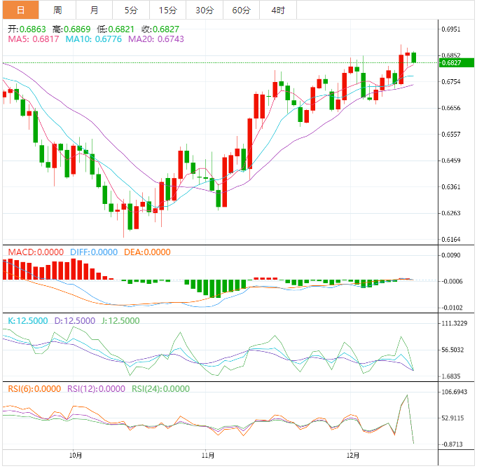 周四欧洲时段盘前,澳元兑美元刷新了日低点,并跌至0.6825。
