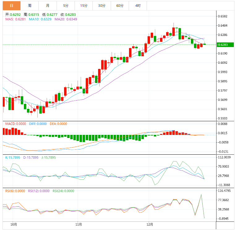 支撑位:0.6254 0.6219 0.6185
