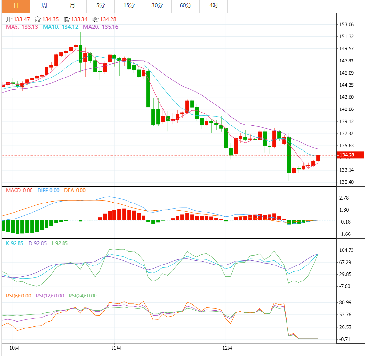 另外,截至发稿时,一周的上行支撑线约为133.20,限制了日元对附近的下行空间。