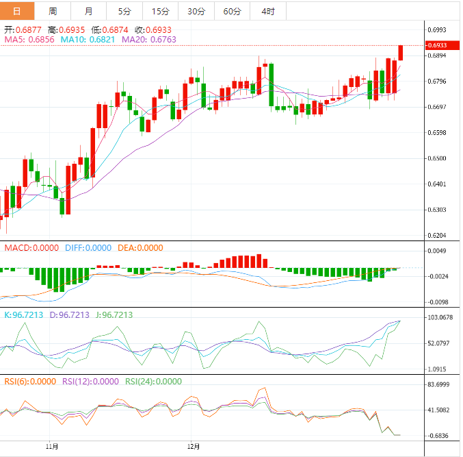 在经历了巨大的反弹之后,对投资者来说,修正至12月13日的高点附近0.6880将是最佳买入,这将推动英镑走向周一的高点0.6930,随后是心理阻力位0.7000。