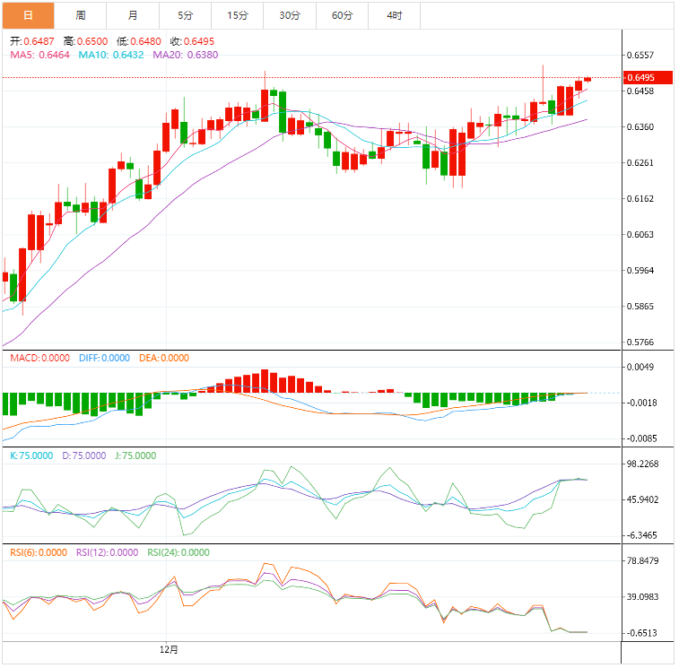 周二亚洲交易时段早盘,纽元兑美元的目标是在心理阻力位0.6500上方继续上行。在乐观的市场情绪下,新西兰元资产正着眼于复苏的延长。对美联储(Fed)收紧政策步伐将进一步放缓的预期飙升,为风险敏感资产注入了力量。