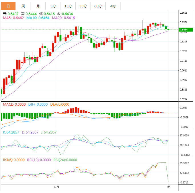 在下行方面,跌破1月31日的低点0.6412将把纽元资产拉向1月17日的低点0.6366,随后是1月12日的低点0.6300左右。