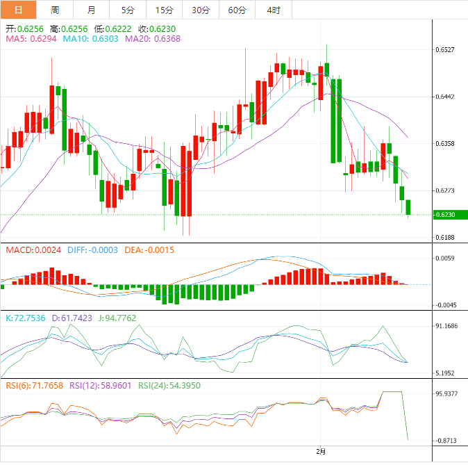 支撑位:0.6222 0.6189 0.6145