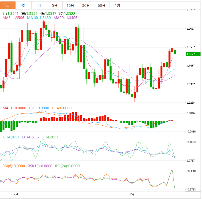 美元兑加元盘中下跌0.25%,这是进入周四欧洲市场的三个交易日中第一个下跌的交易日。在此过程中,加元兑美元在截稿前跌至1.3520。