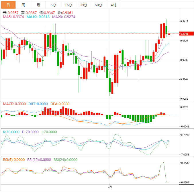 周二亚洲时段,美元兑瑞郎从0.9420上方大幅回调后,汇价正在0.9350附近建立中间缓冲位。在瑞士第四季度国内生产总值(GDP)和美国ISM制造业PMI数据发布之前,瑞郎资产预计将横盘。
