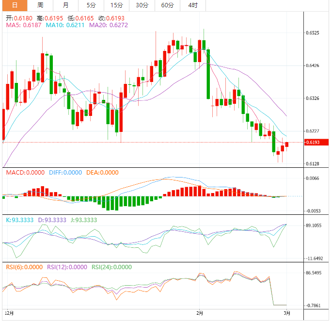 周三,一系列令人失望的数据导致澳元暴跌,纽元兑美元当日承压约0.2%。然而,在撰写本文时,由于来自中国的利好消息,纽元兑美元的交易价格为0.6185,脱离其低点。