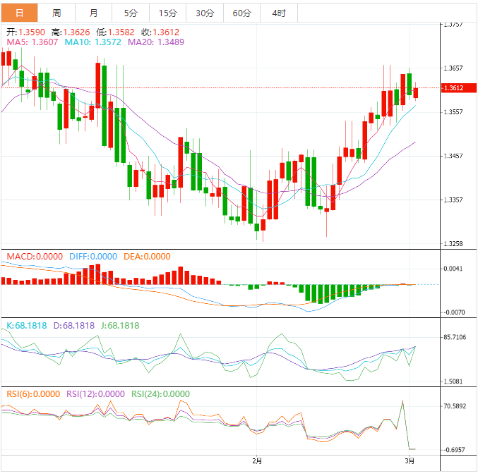 周四欧洲市场早盘,美元兑加元多头努力保持在1.3600关口附近。